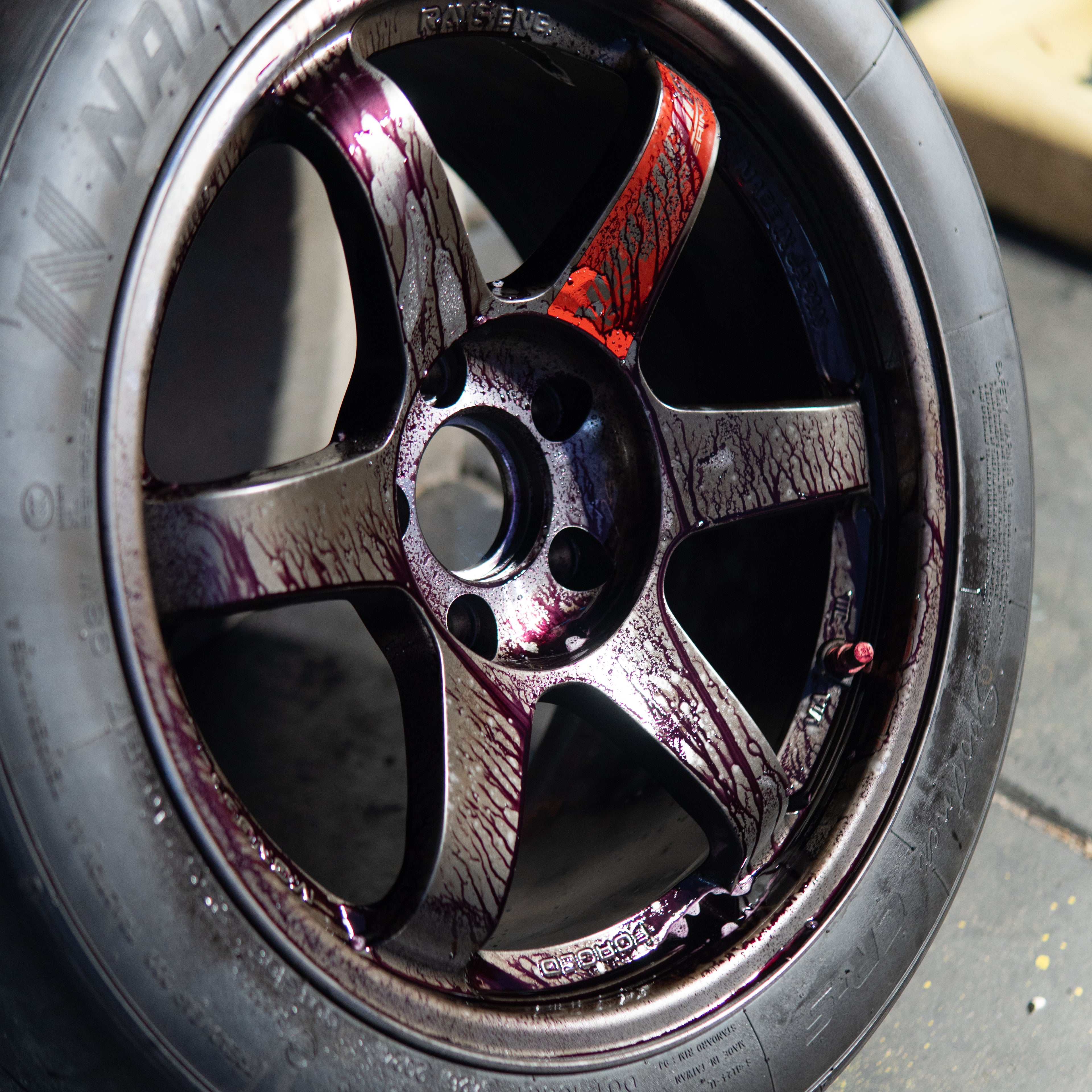 Iron Bleed is a powerful wheel cleaner that breaks down tough brake dust, grime, and road contaminants. Its unique formula reacts with iron particles, turning a reddish-purple as it works, making it easy to see the cleaning power in action. Safe for all wheel types, simply spray on, let it dwell for 2–3 minutes, then rinse thoroughly. Do not let the product dry on the surface.